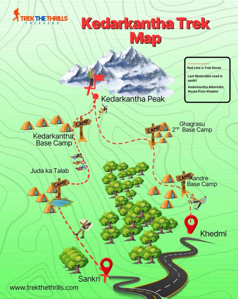 The journey begins from Sankri (6,400 ft), a picturesque village known for its wooden houses, terraced farming, and apple orchards. Sankri also acts as the base for famous treks such as Har Ki Dun, Ruinsara Pass, Bali Pass, and Borasu Pass, making it a vibrant hub for trekking in Uttarakhand.