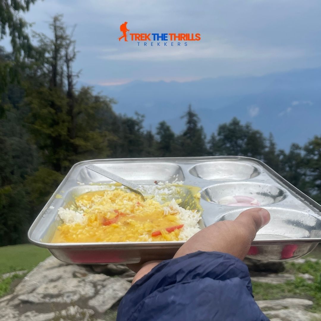 Meals: Nutritious vegetarian food – breakfast, lunch, evening tea/snacks, and dinner throughout the trek.
