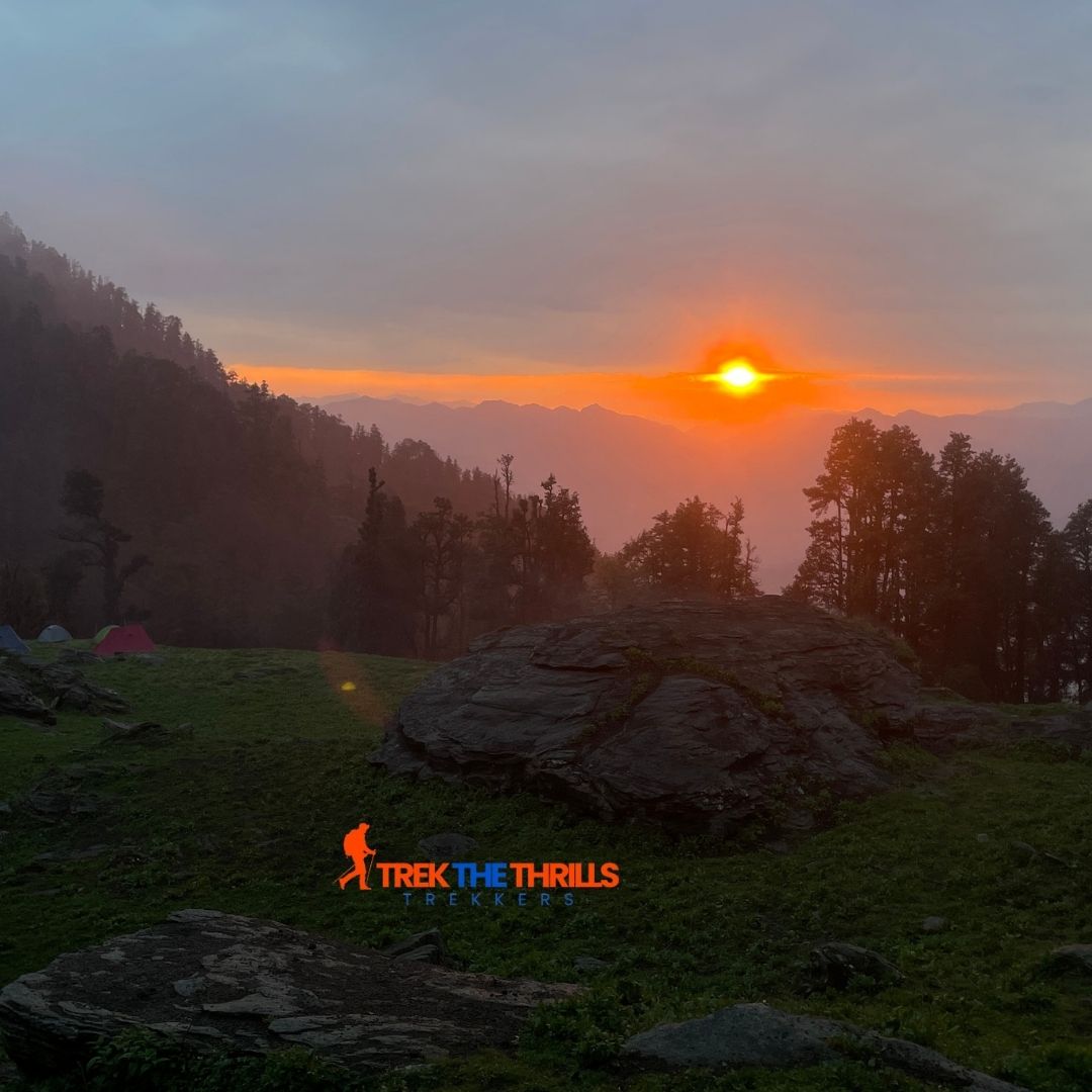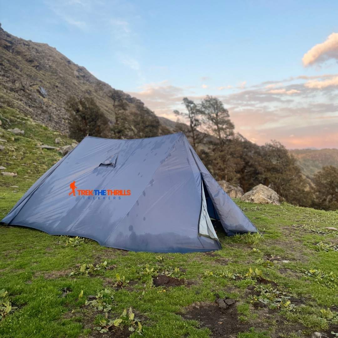Stay: Accommodation on Day 1 in a cozy guesthouse/hotel at Sankri, followed by comfortable triple-sharing tents with sleeping bags and mats during the trek.